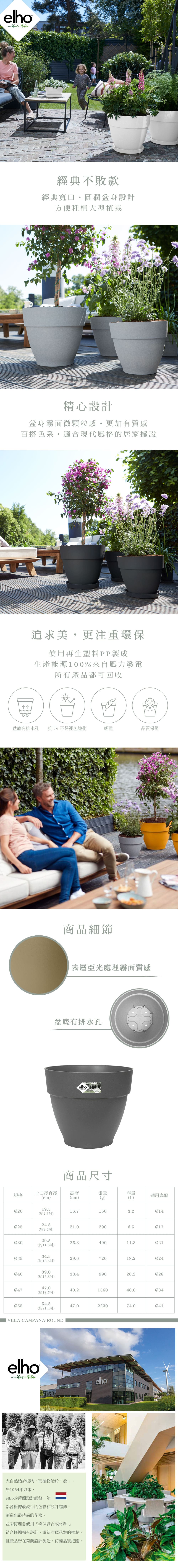 【盆器】elho – vibia 坎帕納圓盆 (Ø20 – 47cm) 灰黑
